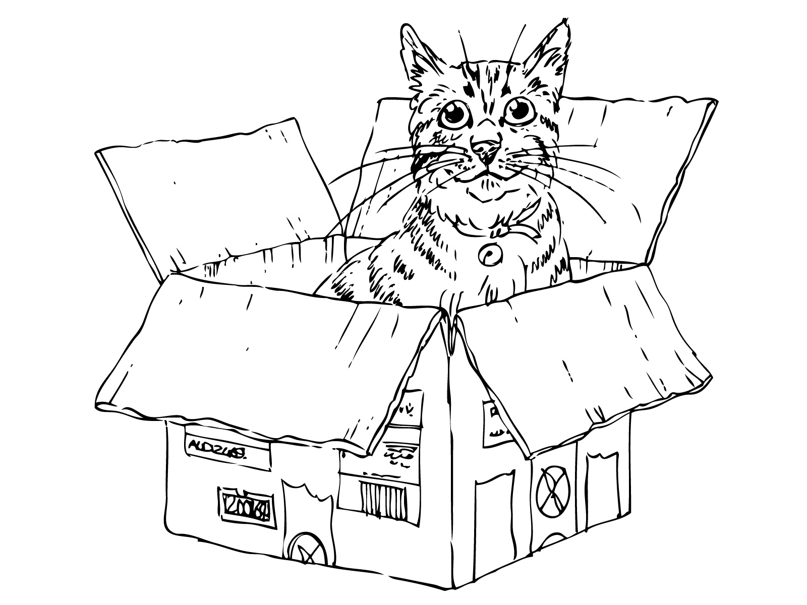 Digi Stamp - Cat In A Box