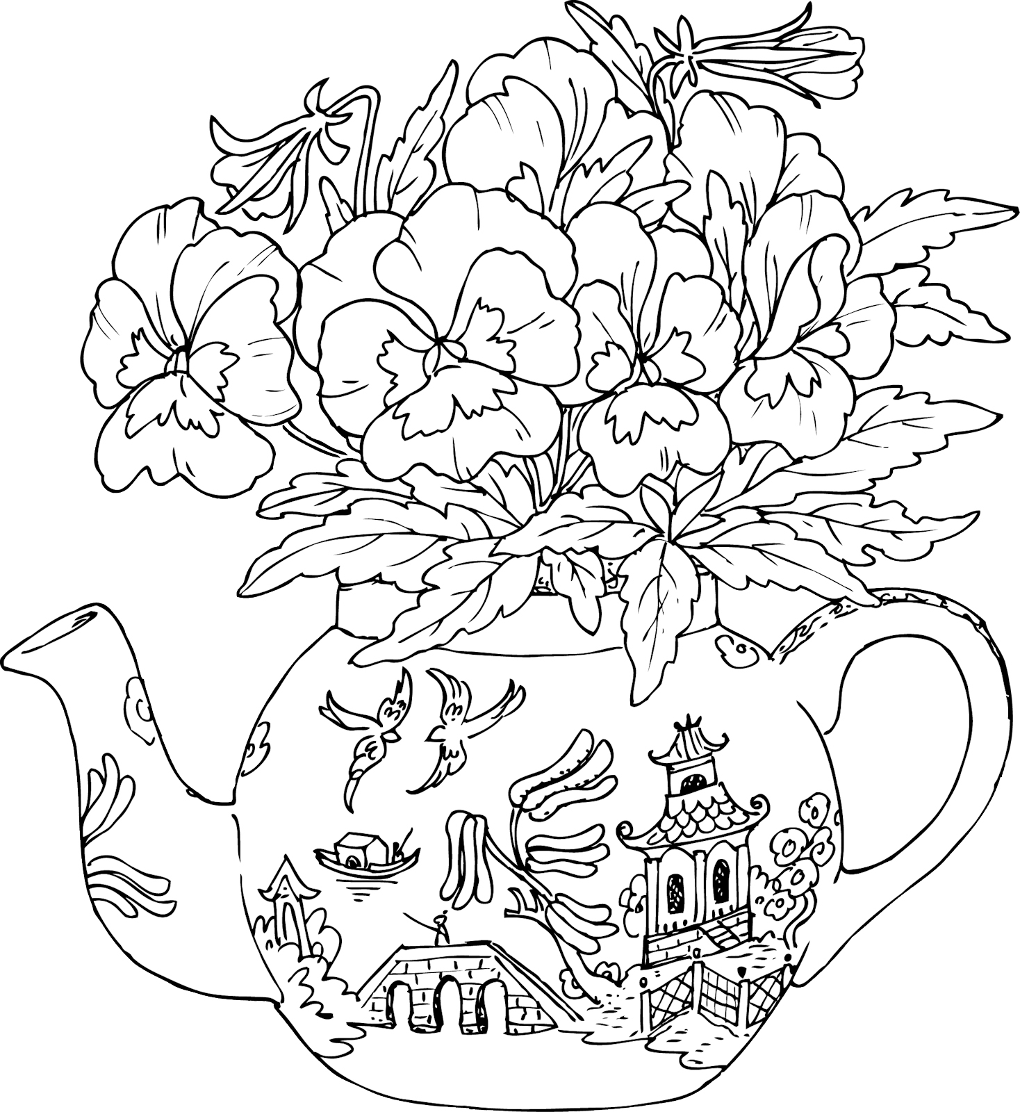 Digi Stamp - Pansy Teapot